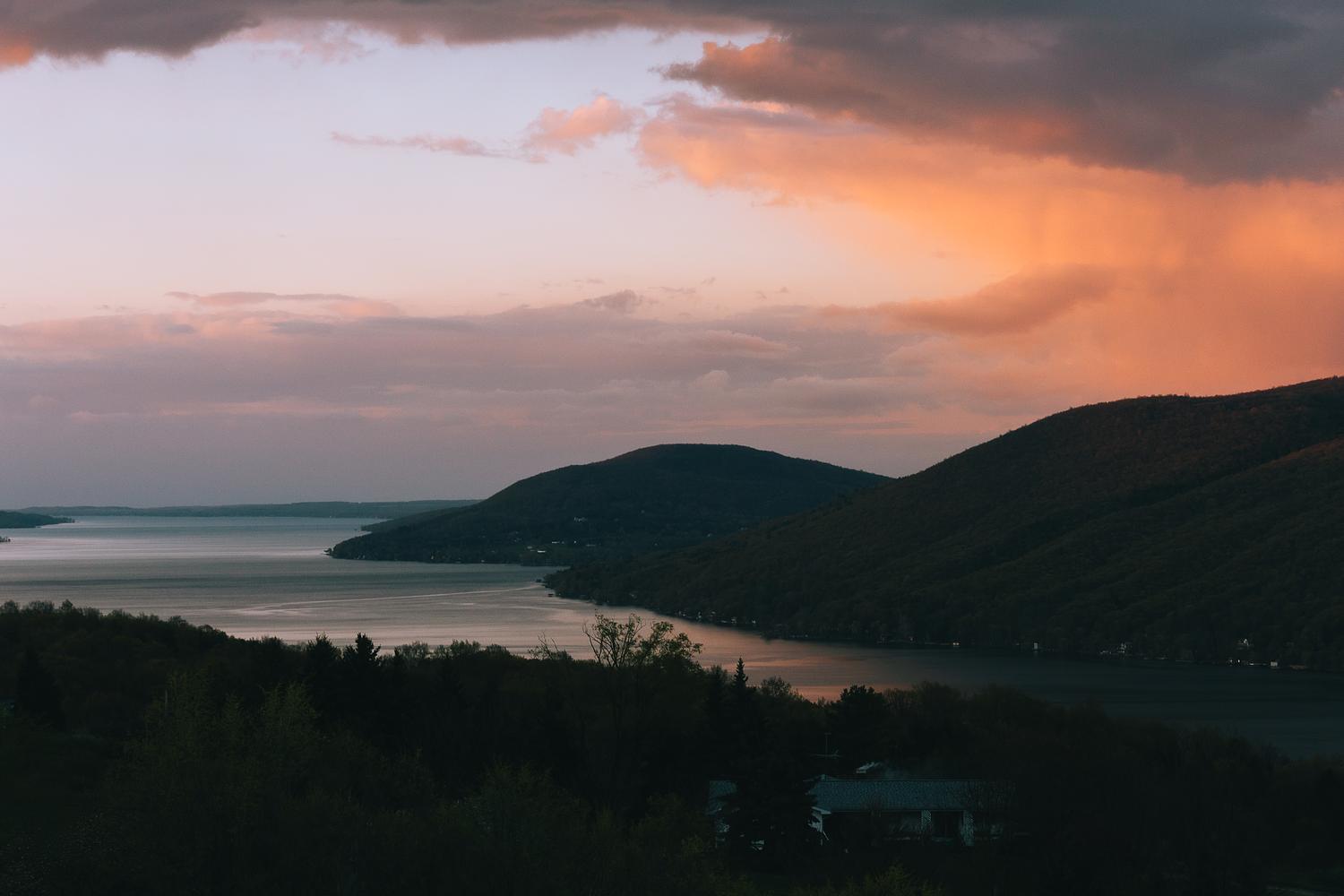 One evening driving home from work I noticed beautiful sunset colors shining on the clouds above the lake and snap this photo